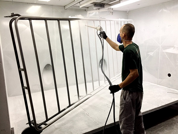 Em seguida a peça é levada a uma estufa, que após ser aquecida de 160 a 220ºC, endurece a tinta, formando uma película de alto acabamento, super-resistente, proporcionando maior qualidade e durabilidade.